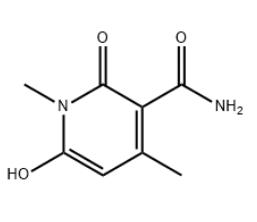 CAS NO : 42799-45-1 EC NO : MF : MW : Specification : 99% min Synonyms : 6-hydroxy-1,4-dimethyl-2-oxo-1,2-dihydropyridine-3-carboxamide;3-Pyridinecarboxamide, 1,2-dihydro-6-hydroxy-1,4-dimethyl-2-oxo-; Molecular Structure :